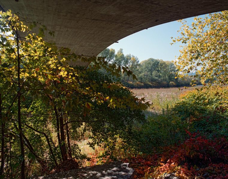 Dans Au bord des eaux mêlées, j’aborde ces territoires aux identités multiples dessinés par les confluences de certaines rivières ardéchoises avec le Rhône. Photographiquement, nous sommes souvent confrontés à des images qui visent l’efficacité de la démonstration, soit en isolant une problématique du contexte, soit en privilégiant le choc visuel. Dans mes photographies, je tente non pas de noyer le poisson, mais de le faire évoluer dans un environnement élargi, complexe, porté par des détails subtils qui invitent le regard à une immersion rapprochée. Sans exhaustivité, ni inventaire à charge, je suis l’eau et ses méandres et apparences multiples, ce qui la borde et accompagne, consciente de voir apparaître dans le reflet trouble de sa transparence l’écho d’une société confrontée à la gestion impérative de sa rareté, ou de son abondance, à venir.